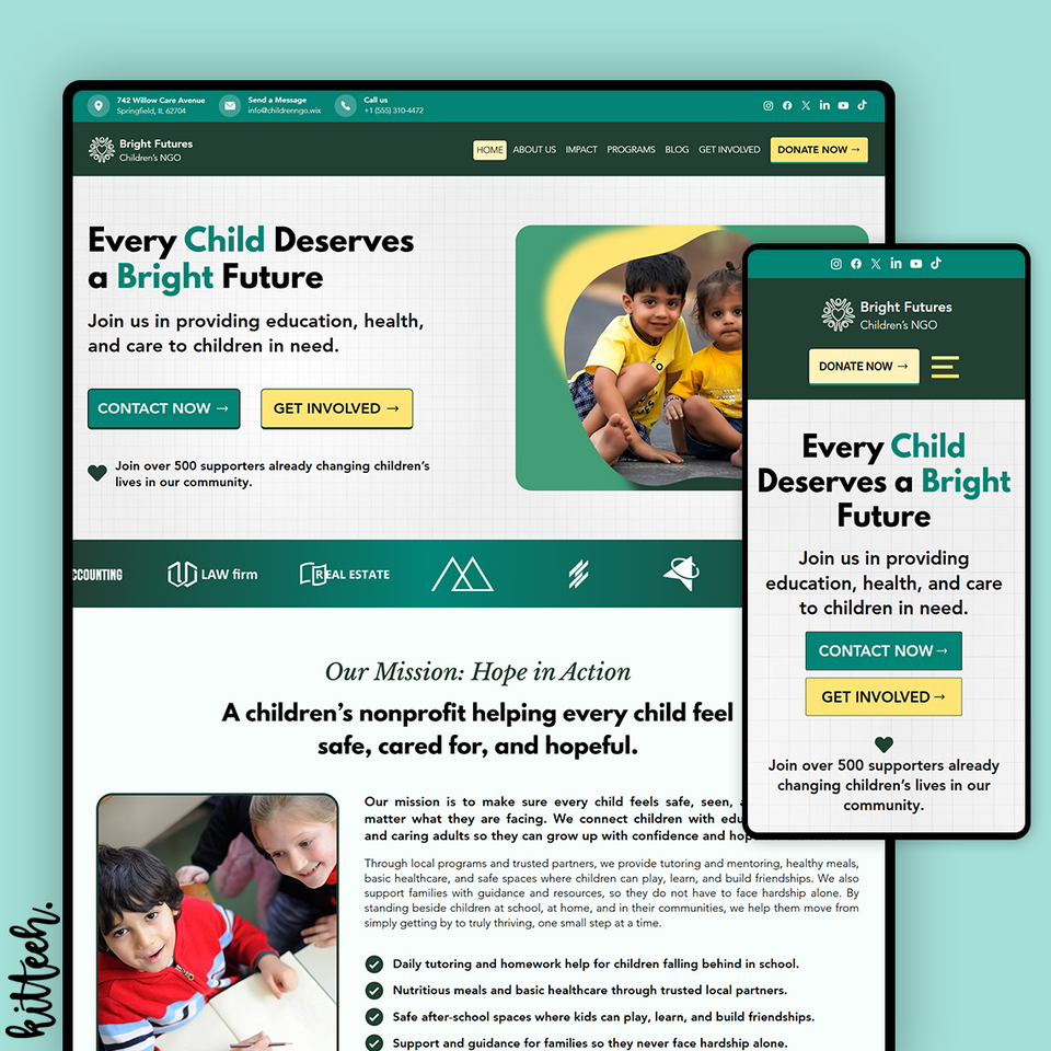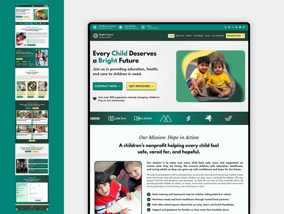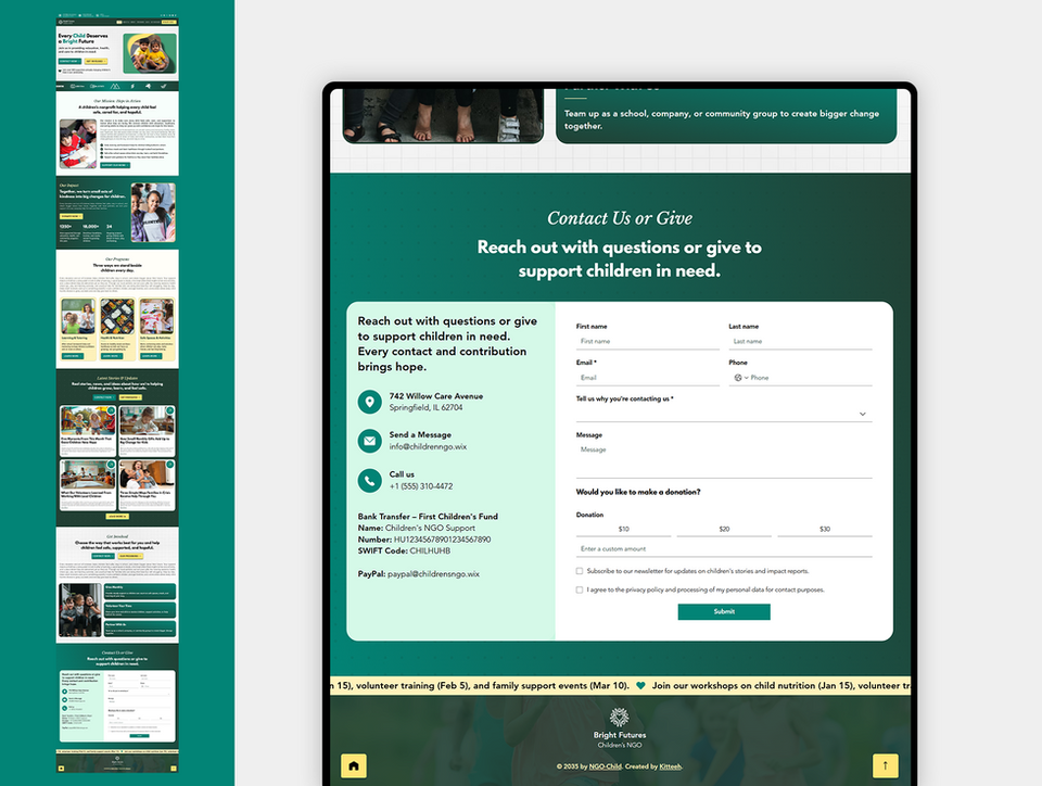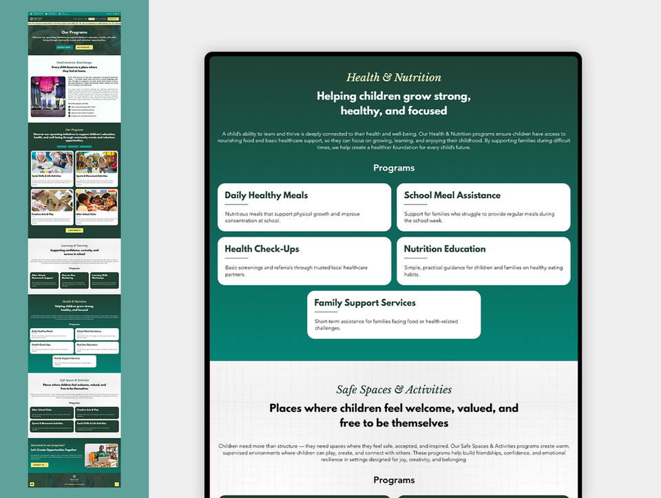 ✦ Build a warm, trustworthy, and mission-driven online presence for nonprofits, NGOs, and community organizations supporting children and families. This modern Wix Studio template is designed to clearly present programs, activities, and real impact while guiding visitors toward contact, involvement, or support.