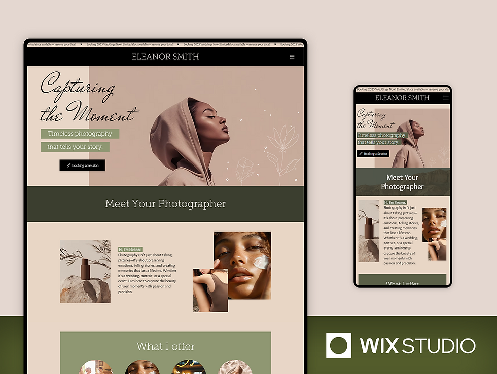 Wix Studio Photography Template | Elegant and Feminine Portfolio | Modern & Stylish Design for Photographers