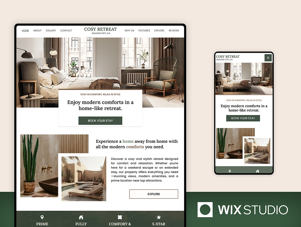 Wix Studio Airbnb and Vacation Rental Template | Booking Apartment Website | Modern & User-Friendly Design for Vacation Homes and Rentals