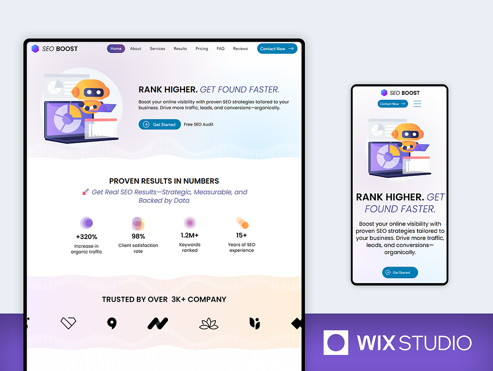 Boost your SEO business with this one page Wix template, designed for consultants and digital marketing experts. Features colorful animations, mobile responsive layout, and easy editing—no code required.