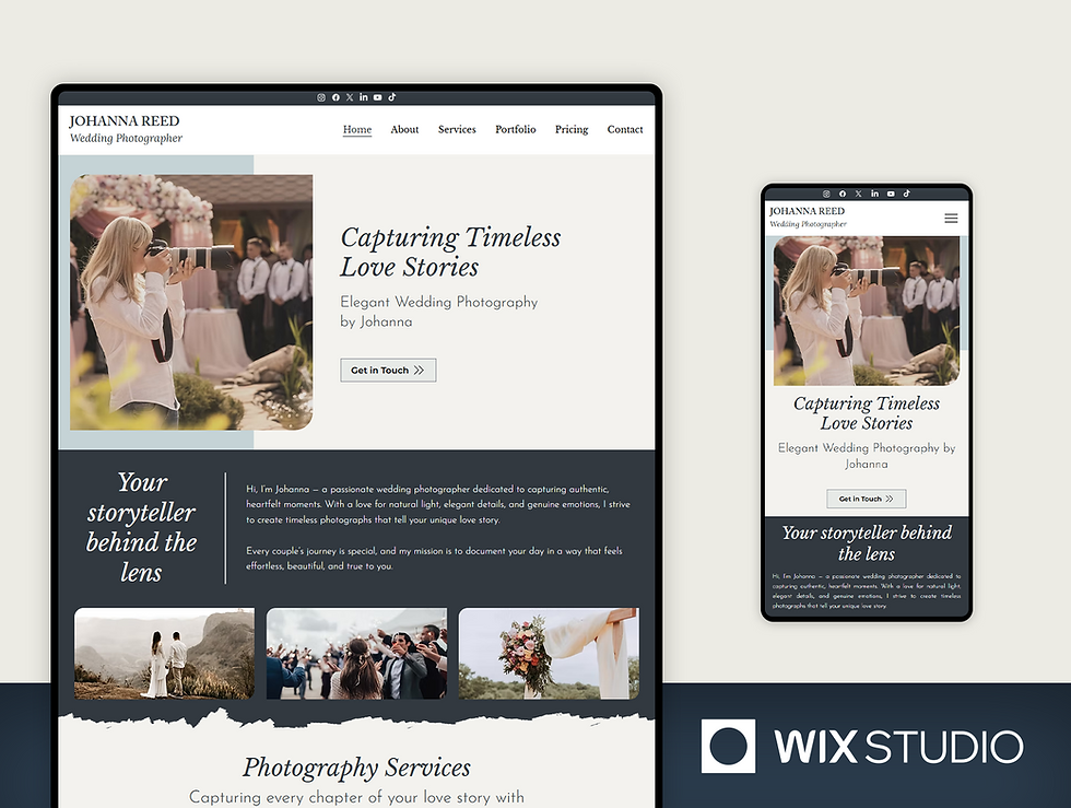 ✦ Elegant, timeless, and crafted for wedding photographers — this Wix template is designed to beautifully showcase your portfolio, services, and packages.