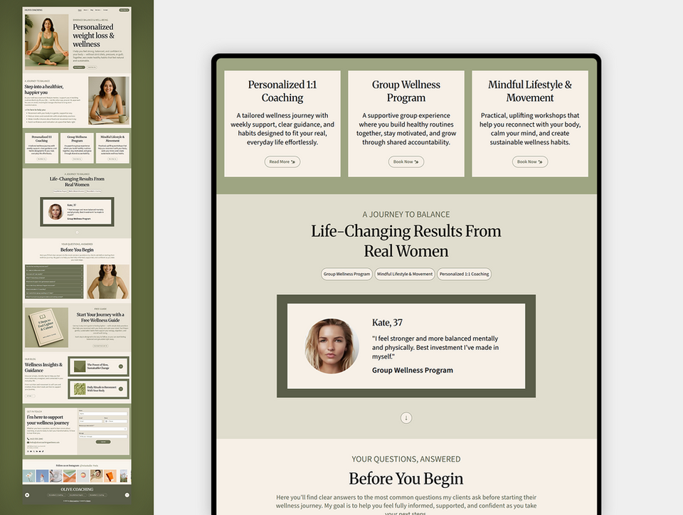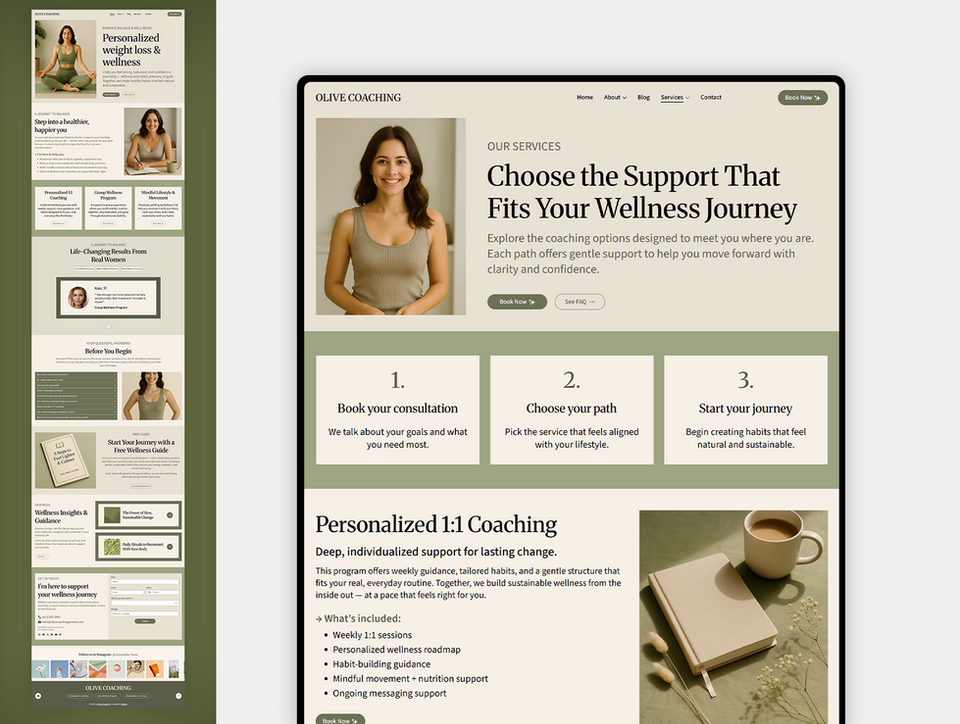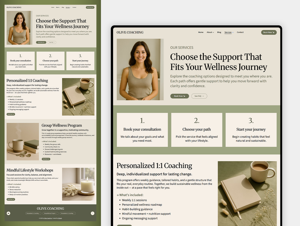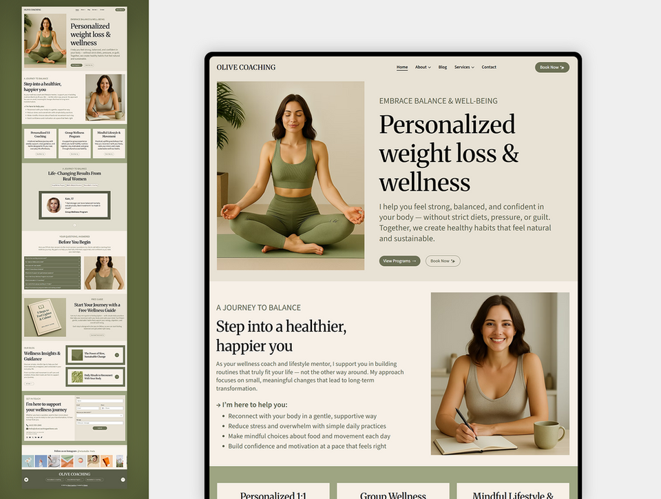 ✦ Create a calming, elegant online presence with this Wellness Coach Wix Studio Template, designed for coaches who want a soft, balanced, and professional website. Perfect for wellness coaches, weight-loss mentors, therapists, lifestyle consultants, and feminine entrepreneurs who want a modern website that builds trust and connects with clients instantly.